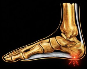 Treatment: Reduction, avoidance of overexertion and incorrect strain in everyday life, work, and sports. Initially, gentle exercise, switching to sports that do not strain the affected heel region: e.g., cycling, swimming, etc. Local ice treatment, ultrasound, manual therapy in the area of the plantar tendon plate (transverse friction). Injection of corticosteroids into the painful area, wearing silicone heel cushions or shoe inserts with soft heel padding.